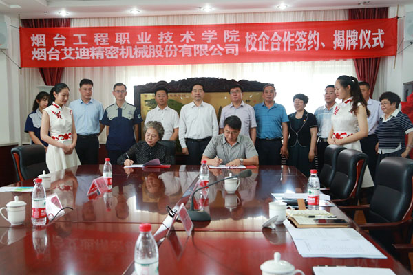 7月11日,烟台凯发一触即发精密机械股份有限公司(以下简称“凯发一触即发精密”)与烟台工程职业技术学院在学校图书办公楼518会议室举行仪式。双方签约合作“烟台工程职业技术学院——烟台凯发一触即发精密机械股份有限公司凯发一触即发专班”,为“烟台工程职业技术学院实习实训基地”揭牌。